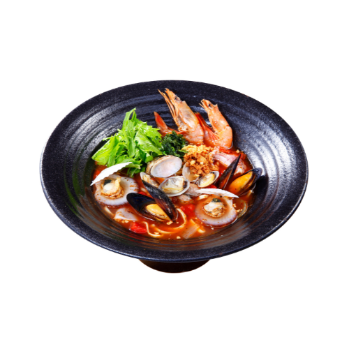 駿河湾で採れる人気の深海魚『本エビ(ヒゲナガエビ)』と沼津港直送の魚介の旨みをカル麺自慢のトマトソースと合わせ凝縮した、ここでしか食べられない贅沢な一品です。